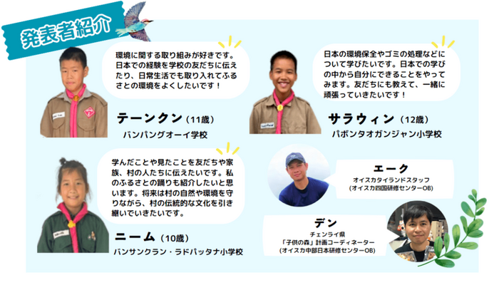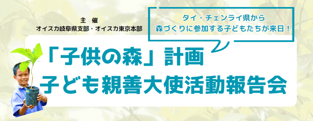 タイ北部で深刻化している土砂崩れや洪水などさまざまな自然災害に対し、オイスカでは「子供の森」計画を展開。タイで環境保全に取り組む子どもが来日し、現地の環境課題や植林活動などについてレポートを行います。