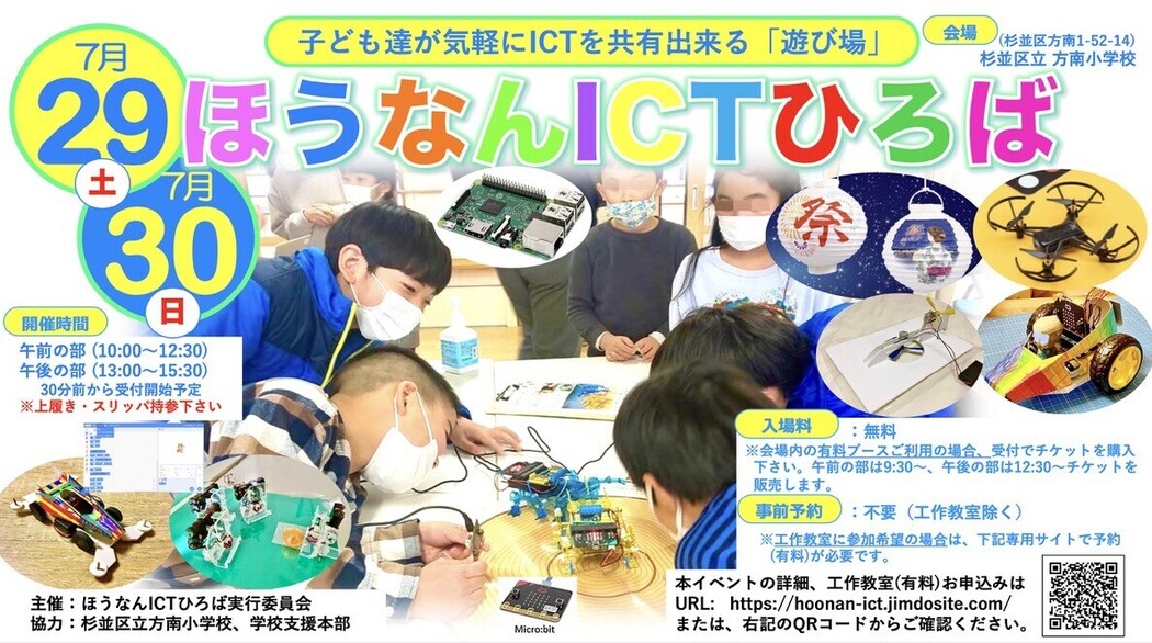 7/29,30 子ども達がITを身近に遊べる場として、杉並区立方南小学校で「ほうなんITひろば」を開催