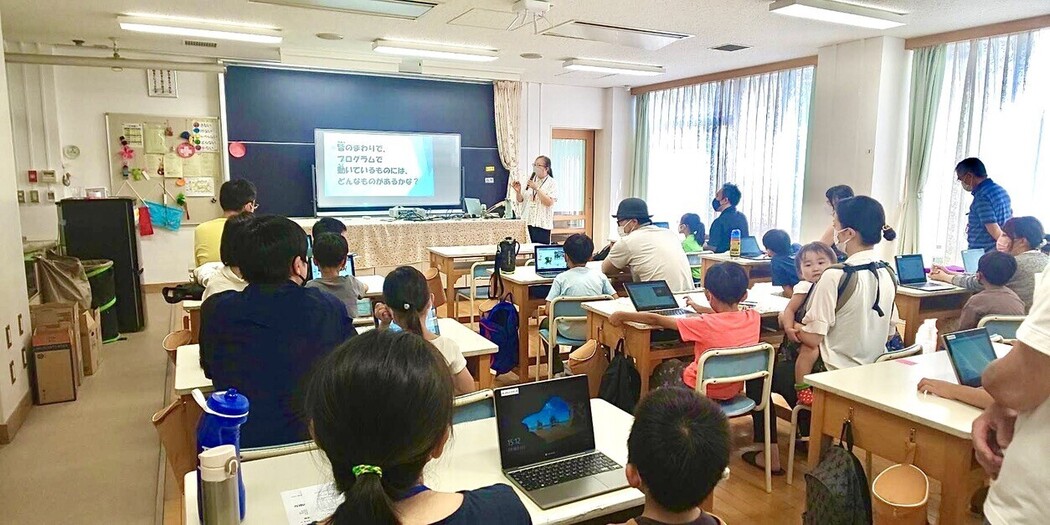 2022年8月にスクラッチプログラミング(初心者向け)講座を開催した時の様子です。大勢の児童保護者様が参加されました。