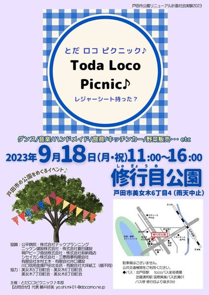 集合場所:修行目公園 ステージ裏(とだロコピクニック♪開催会場) |