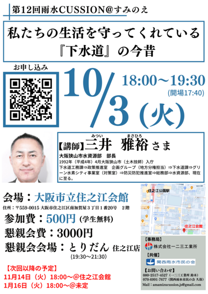 - 【私たちの生活を支える水について知る】第12回雨水Cussion@すみのえ