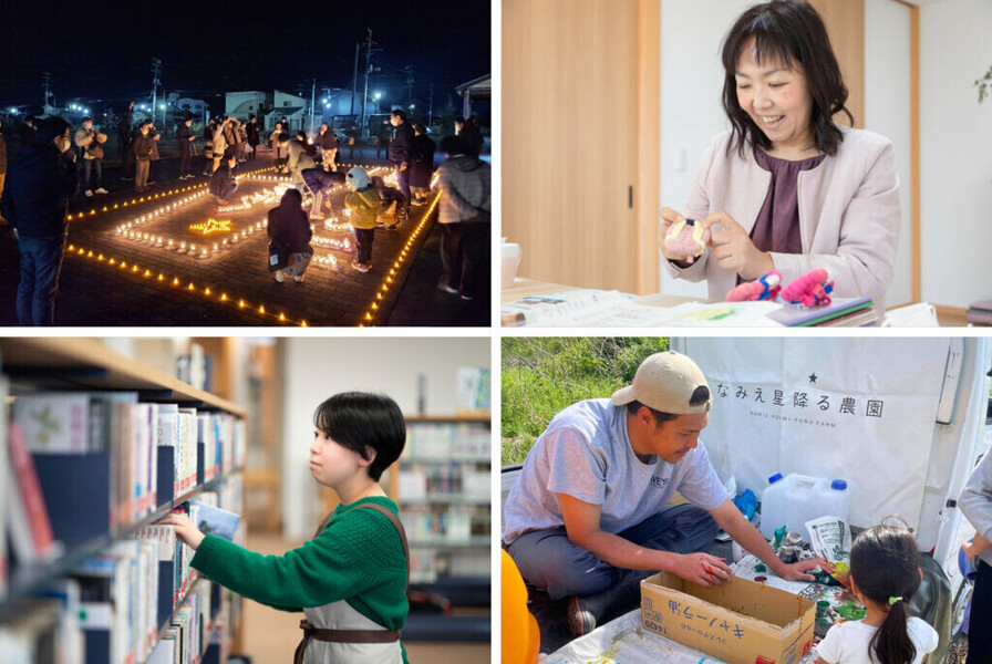 ゲストには、浪江町で若者や地域の人がつながれる場づくりをしている任意団体「なみとも」を運営する小林奈保子さん、田舎での暮らしへの憧れからお子さんと楢葉町に移住し、スーパー「ブイチェーンネモト」で働きながら、地域活動にも積極的に参加されている米川奈穂美さん、東京都内で図書館司書として働いた後に富岡町に移住し、移住後も図書館司書として、震災後の町の図書館の持つ可能性に挑戦されている古谷恵美さん、南相馬市に移住し、様々な仕事を掛け持つパラレルワーカーとして働きながら、新しい自分との出会いを模索されている伊藤悠河さんにご登壇いただきます。