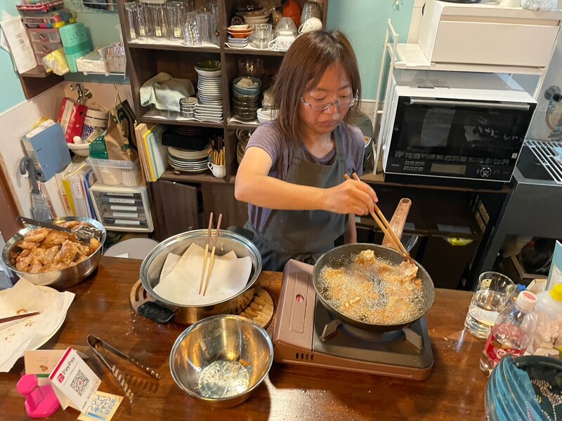 11時からお弁当を配布するので、私たちは8時頃から調理を始めます。