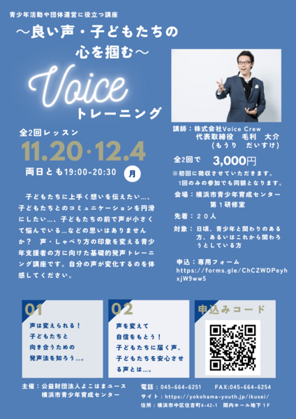 - 11/20良い声・子どもたちの心を掴む~Voice (ボイス)トレーニング~
