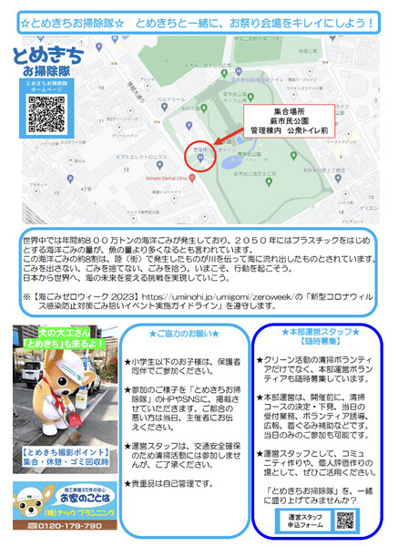 参加はどちらか1日で大丈夫!とめきちと一緒に、お祭り会場をキレイにしませんか?