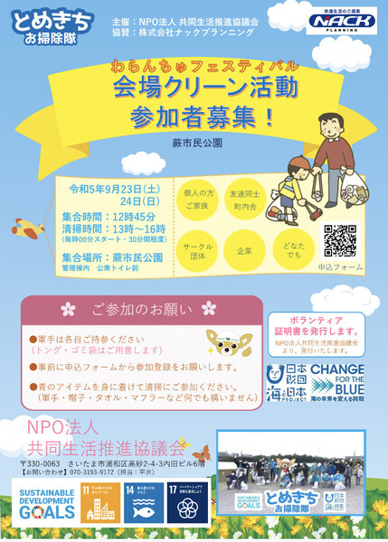 - 9/24日☆蕨市「わらんちゅフェスティバル2023」清掃ボランティア