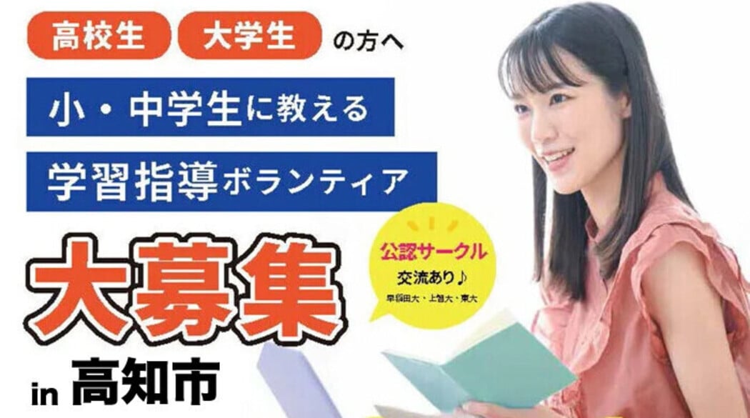 【高知市内在住大学生・高校生へ】小・中学生への学習ボランティア大募集!!!