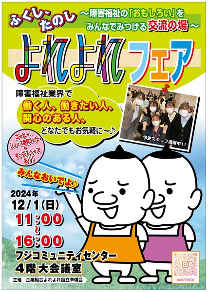点(小規模の事業所を中心に)を線で結び、線で円を作ることで、業務の効率化と業界の活性化を図り、人づくり・人集めにつなげていきたいと考えています。そのために、今働いている人たちから『やりがいのある、面白い仕事であることを多くの皆様に発信』していこうと考え、今回のイベントを企画しました。すでに働いている人、これから働く人、障害当事者など、たくさんの交流を重ねることで、人財確保・育成・定着を実現していきます。一緒に活動してくれるボランティアを募集します。マルシェやイベントのお手伝いをお願いします。