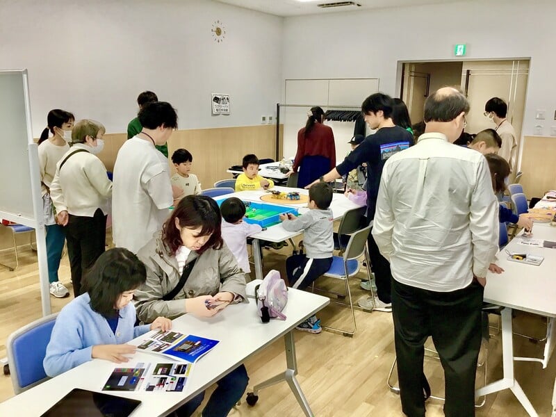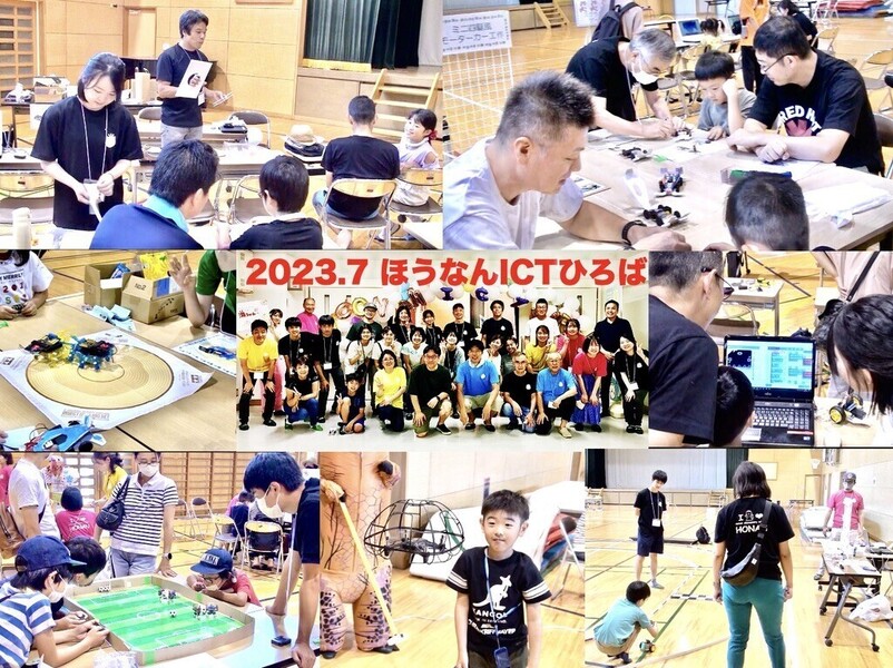 同じ場所ではありませんでしたが、2023年7月末に杉並区立方南小学校にて「ほうなんICTひろば」を2日間開催しました。ご参加いただきましたボランティアスタッフさんは、社会人の方が半数、大学生や高校生の方が半数という割合でした。このような地域イベントへの参加が初めての方が多かったのですが、事前に各コンテンツの操作方法や作り方をまとめたテキストを配布し、レクチャーする場を設けて体験してもらいましたので、本番当日は大きなトラブルもありませんでした。ご来場いただいた地域の親子連れの皆さんと、電子工作をしたり、昆虫・サッカーロボットで遊んでもらったり、普段知り合えない方々との交流を体験できた事が、スタッフさんにはとても新鮮だったようです。