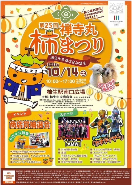 昨年過去最多4000人来場した柿生駅前の禅寺丸柿まつり。ヒーローやアイドルも出演する祭りの設営・誘導・ステージサポート・案内・撮影・解体等お願いします♪