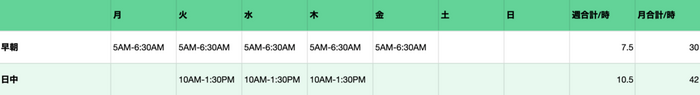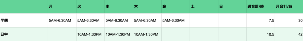 基本はオンライン(zoom)での学習がメインです。今の勉強時間帯は平日の早朝、お昼までの時間帯ですが、柔軟に対応しながら学習環境を確保していくことは可能です。 |