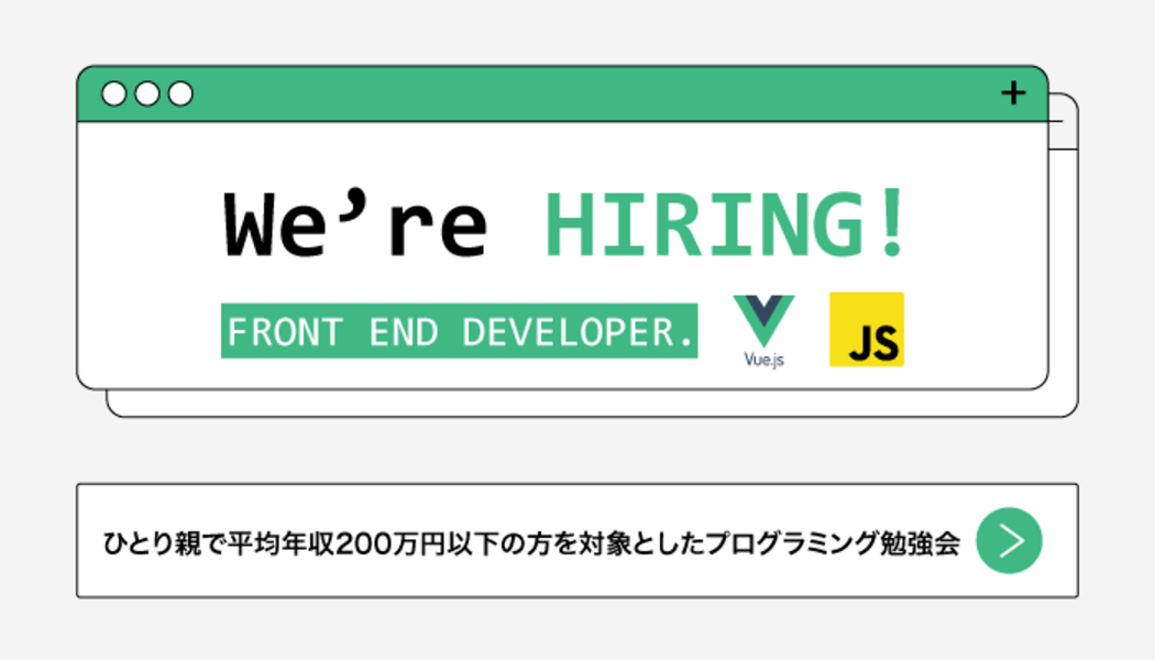 - 【ひとり親世帯対象】フロントエンド(Vue.js)の開発を手伝ってくれる方募集!