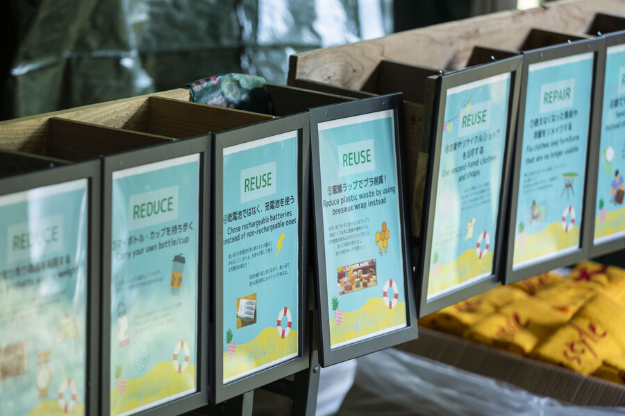 来場者が自分の手でごみ資源を分別できるようにする "ごみ資源の分別ナビゲート" や、ごみの根本削減に取り組む "リユースカップ・食器"の導入など、イベントの環境負荷を下げるための活動をボランティアと一緒に運営しています。