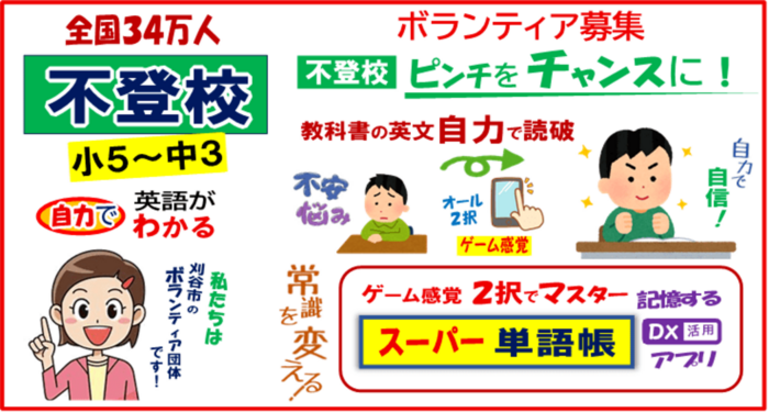 不登校に「スーパー単語帳」で学習支援するボランティア団体です。