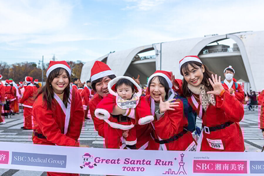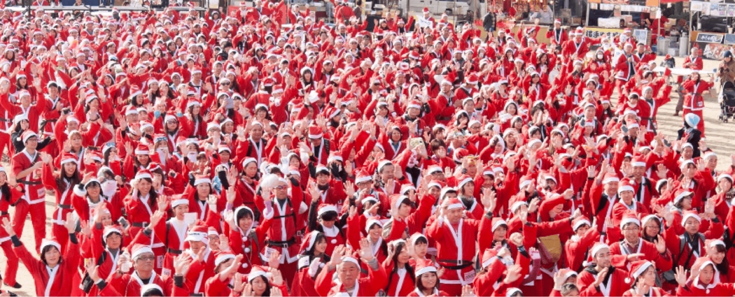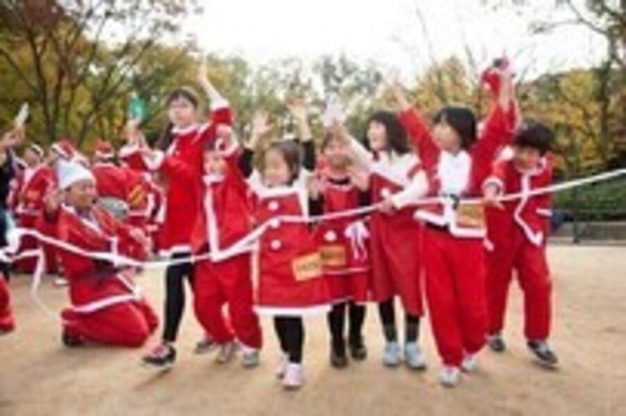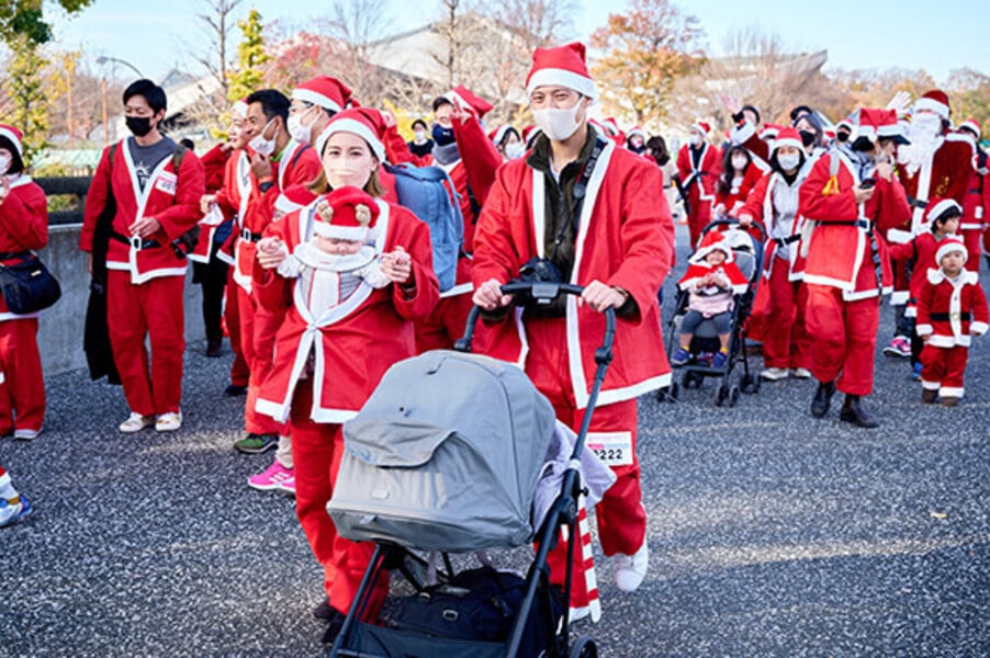イベントでは、サンタクロースの衣装に身を包んだ参加者がコースをウォーク&ランニング。参加費の一部を活用して国内外の子どもたちの医療支援を行います。