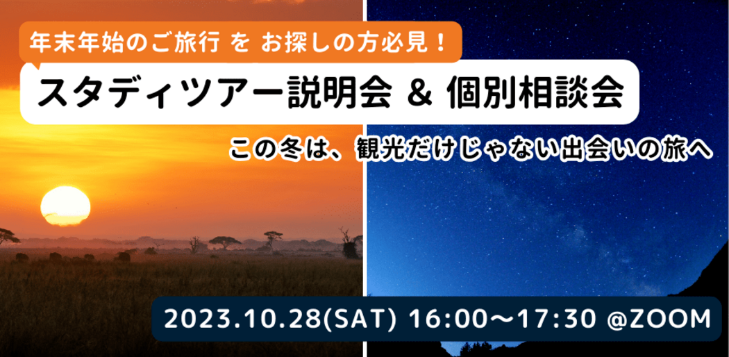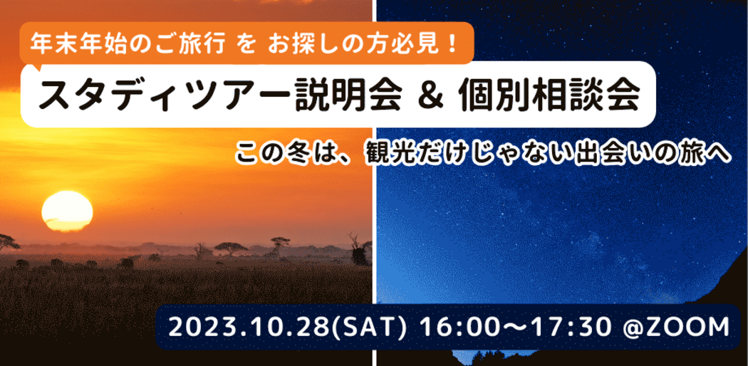 《無料・アーカイブ配信あり》年末年始の旅行はこれ!スタディツアー説明会&個別相談