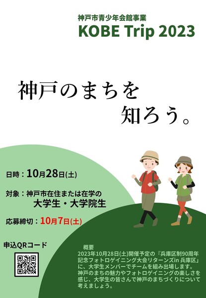 - 「神戸のまちを知ろう。」神戸市青少年会館事業KOBE Trip 参加者募集!