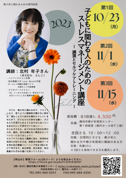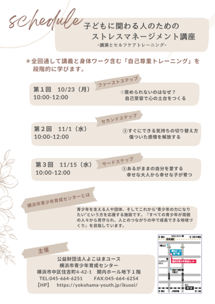 - 11/15(水)1回のみ参加okどもに関わる人のためのストレスマネージメント講座
