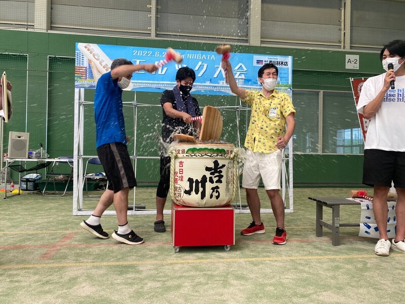開会式に行われた始球式ならぬ始棒式では新潟のゆるキャラ、レルヒさんが登場し見事なブレイクを披露したり、表彰式では優勝チームによる鏡開きを行うなど新潟らしい演出で華々しい大会となりました。大会終了後も各チームで盛んに交流が生まれるなどスポーツ大会を越えた地域活性化イベントでした。