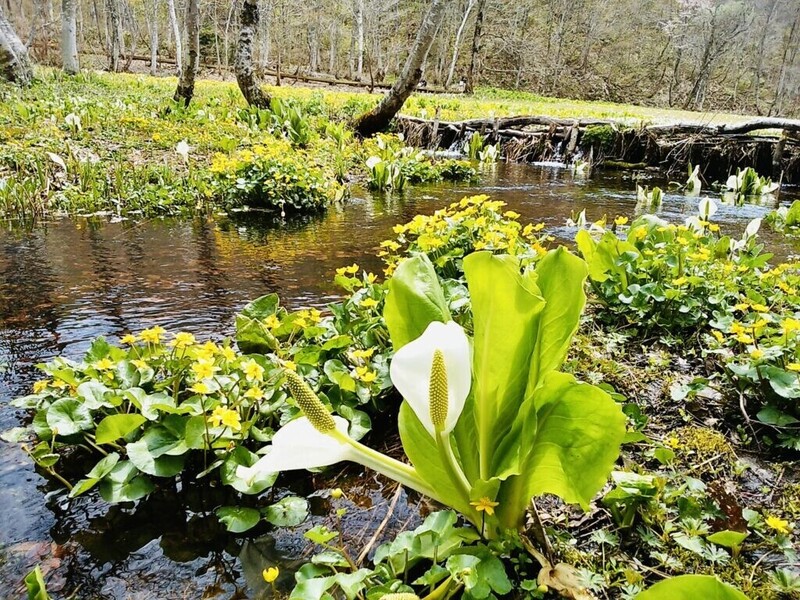 約5haの湿原に40万株のミズバショウが咲き誇る、岐阜県飛騨市宮川町にある「池ヶ原湿原」。岐阜の尾瀬とも呼ばれています。歩きやすい木道があり、車椅子やベビーカーでも安心な「バリアフリーの森」として親しまれています。