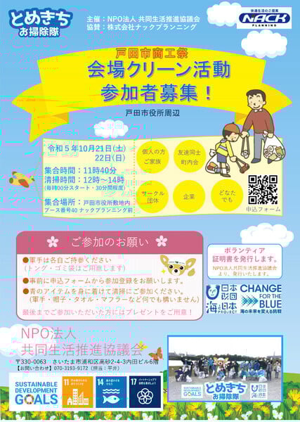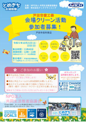 - 【募集】10/21(土)「戸田市商工祭」清掃ボランティア(とめきちお掃除隊)