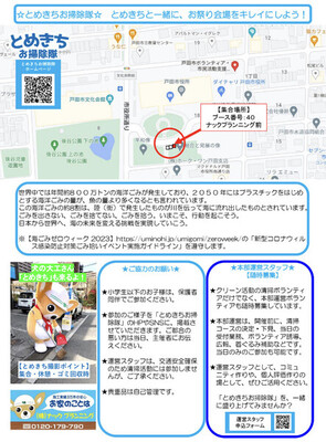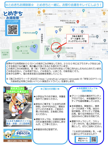 10/21土曜「戸田市商工祭」の会場を綺麗に保ち来場者を迎えるため「とめきちお掃除隊」が清掃ボランティアに参加します!とめきちと一緒に、お祭り会場をキレイにしませんか?