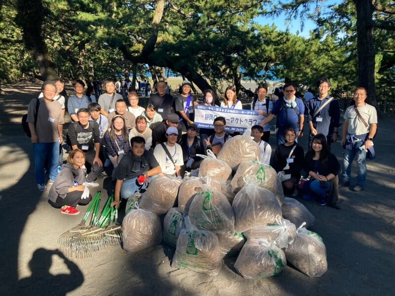 静岡ロータリークラブの皆様と世界遺産にも認定されている、三保の松原の松の落ち葉の清