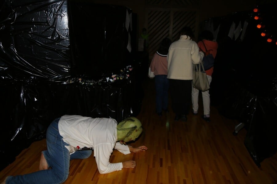 学校や地域では特に、不審者対策が継続課題となっているのが現状でり、お化け屋敷という「恐怖」「ドキドキ」「ハラハラ」という体験を体で覚え、「有事における行動を知ることで命を守る」ことを目的に考えています。