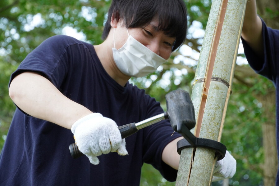 竹を山から切り出し、四つ割りにして洗浄・乾燥させました。