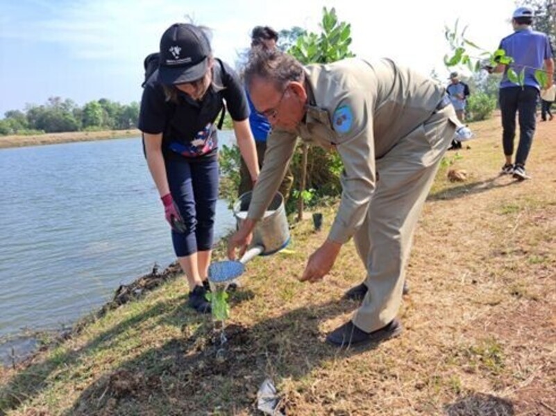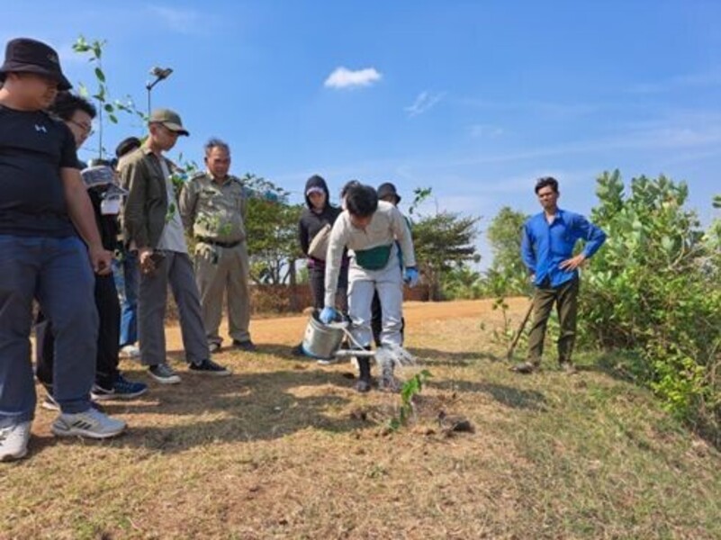 「緑の募金」事業地における地域住民と協働での植林活動(潅水)(2023年2月26日、コンポンチャム州)