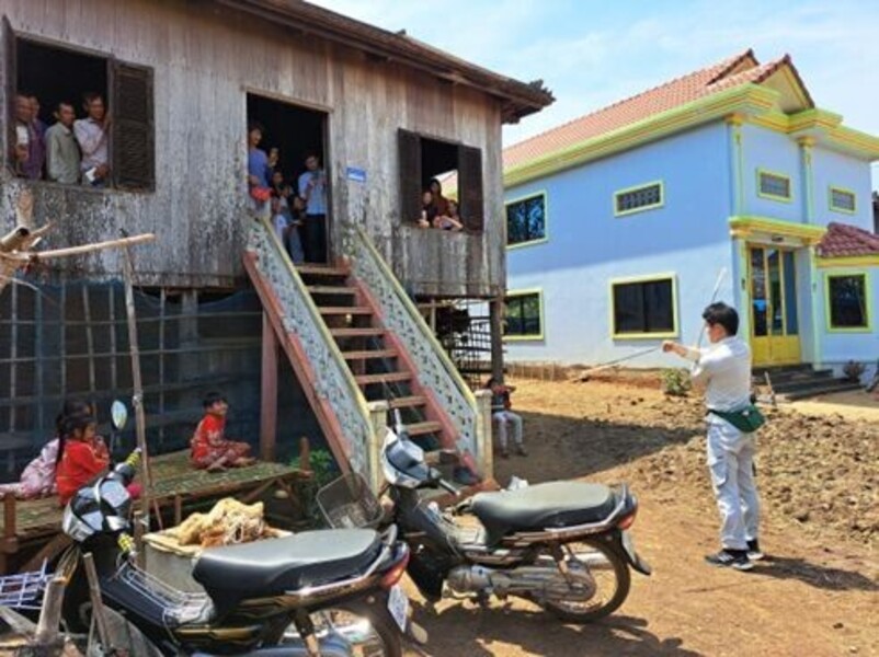 Wat Chas村住民との集合写真(2023年2月25日、コンポンチャム州)