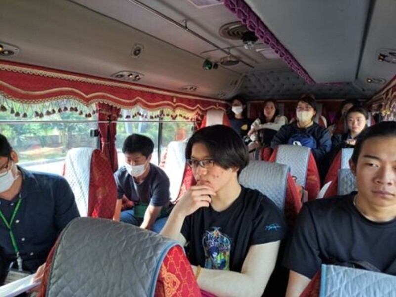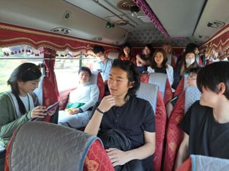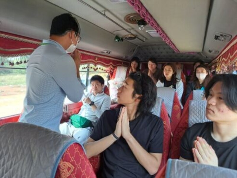 コンポンチャム州に移動中の車内におけるブリーフィング(当日スケジュール確認等)(2023年2月25日、プノンペン→コンポンチャム州)