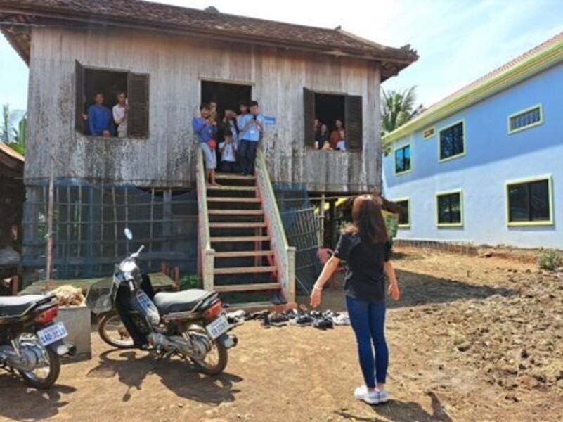 コンポンチャム州内の農村(Wat Chas村)に到着(2023年2月25日、コンポンチャム州)