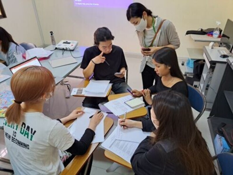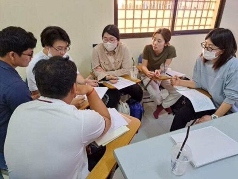 研修成果発表会に向けた準備(2023年2月25日、コンポンチャム州)