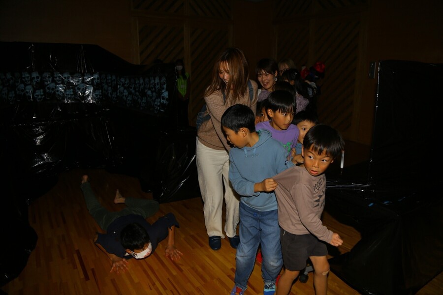キャスト(おばけ役)、しかけ作り、運営・補助それぞれの役割を生かし、子どもから大人まで、一緒になってつくれる怖くて楽しいおばけ屋敷を心がけています。