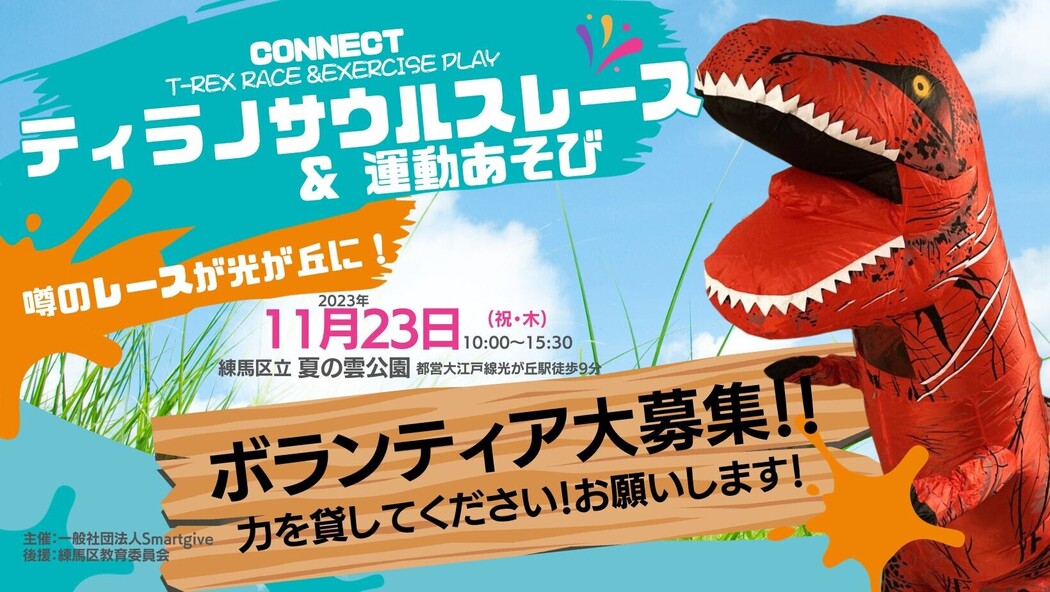 11月23日(木・祝)練馬区光が丘CONNECTティラノサウルスレース&運動あそびの当日ボランティア募集です!公園で恐竜とみんなの運動会。楽しい一日を一緒につくりましょう!