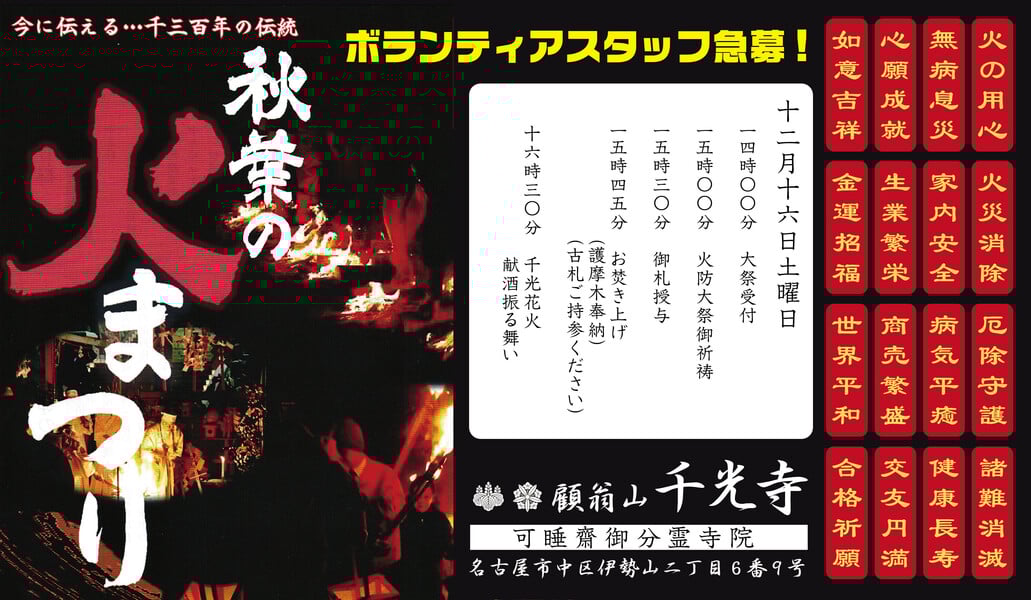 火の用心、無病息災にご利益!秋葉三尺坊大権現『火防大祭ボランティア募集!』 |