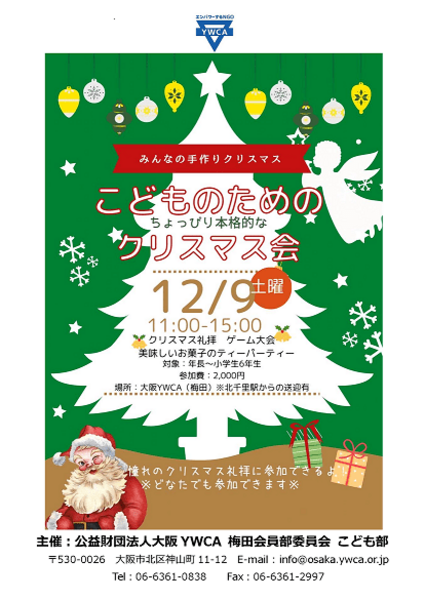 12月9日(土)にクリスマス会を行います!子ども達がちょっぴり大人なクリスマス礼拝、ゲーム大会に挑戦します!当日子ども達と一緒に楽しみながら安全に遊べるようにサポートしてくださる方を募集します。