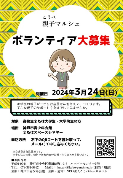 - 【高校生・大学生スタッフ大募集!!】こうべ親子マルシェボランティアスタッフ募集!