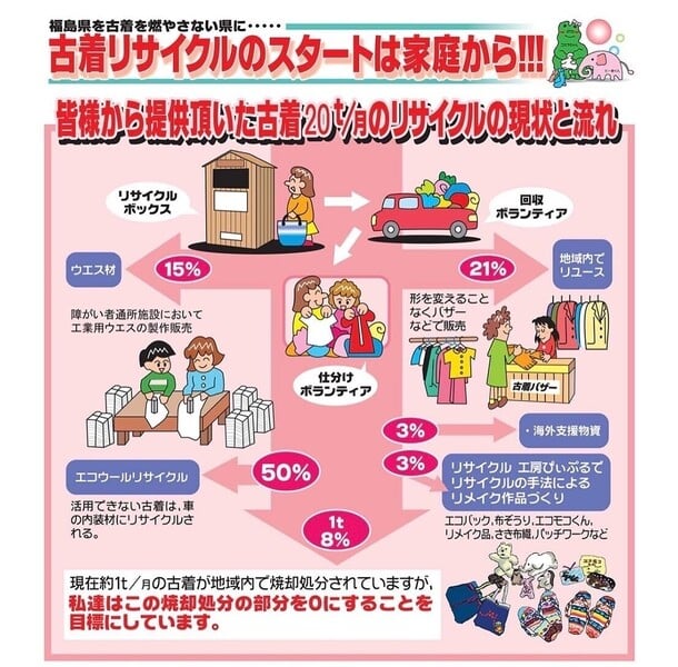 34年前から福島県いわき市で【古着をゴミとして燃やさない社会】を目指して活動しています。