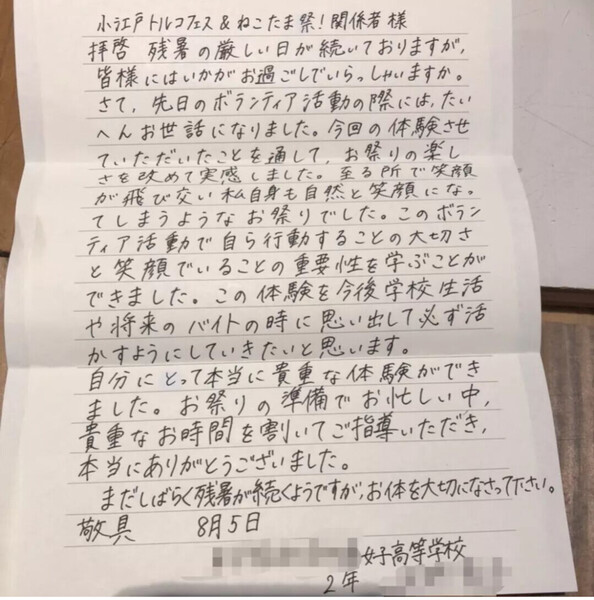 ご参加頂きました学生さんからのお手紙です。