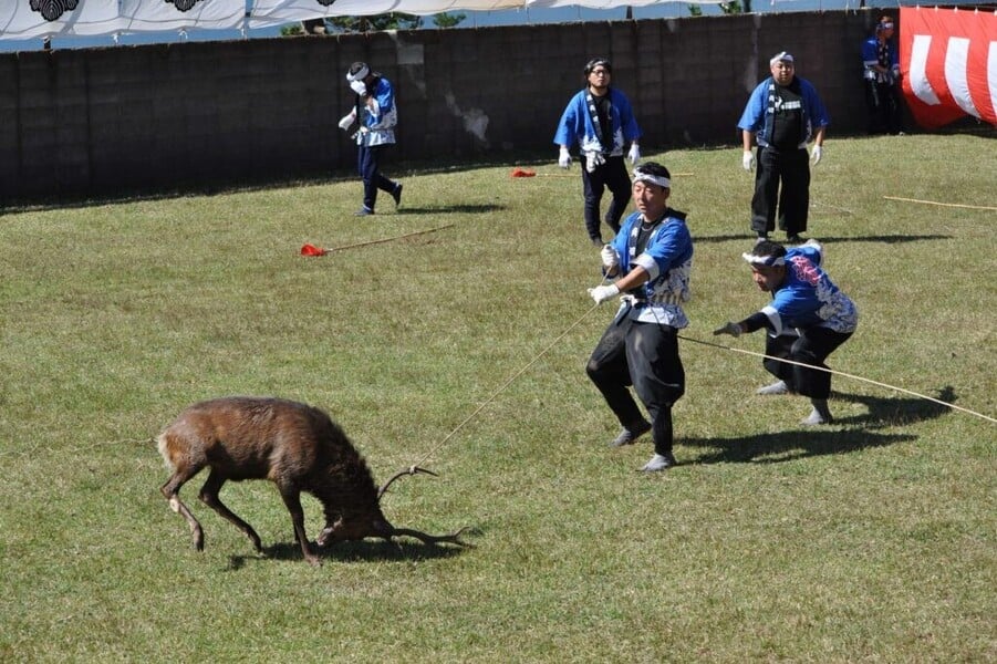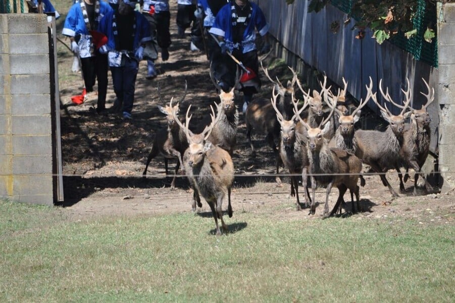 特に危険と判断される気性の荒い鹿の角を発情期前の10月に安全の為に切り落とすのが当行事です。