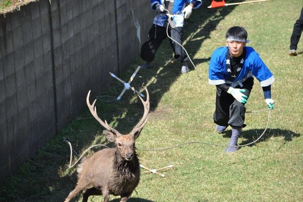 特に危険と判断される気性の荒い鹿の角を発情期前の10月に安全の為に切り落とすのが当行事です。
