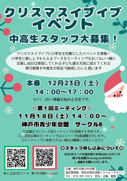 クリスマスイブイブイベント 中高生スタッフ大募集!!
