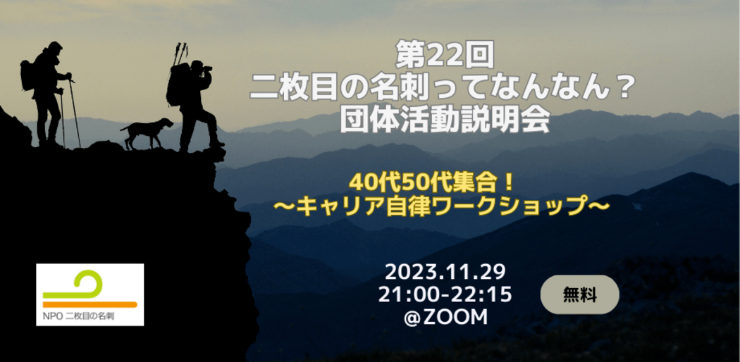 - 「二枚目の名刺団体活動説明会」~40~50代集合! キャリア自律ワークショップ~
