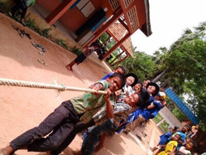 カンボジアで日本式の運動会の実施!綱引きや玉いれをはじめとした団体戦やかけっこなどの個人戦も!高校生のみなさまには運動会を盛り上げる補佐をお願いするので、難しい知識は不要です。
