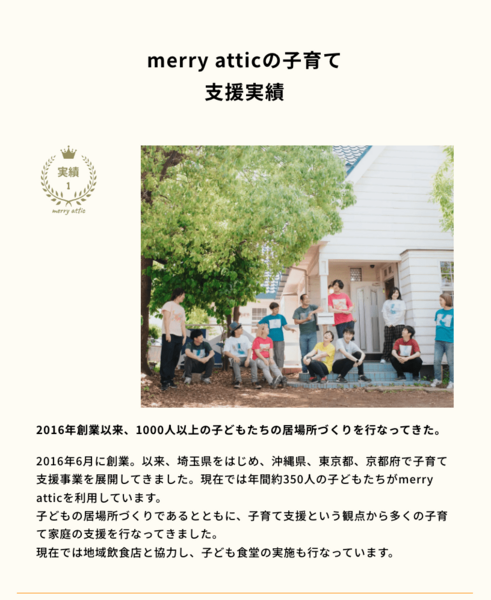 ワクワクする屋根裏という意味ので思いを込め、一般社団法人merry atticとして法人を設立。
