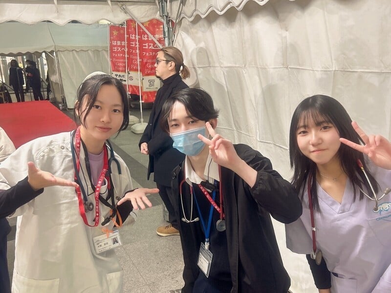 A1:高校生、専門学生、大学生の「学生ボランティア」の方は主に、資格者(看護師、救命士)のサポートとなります。具体的には、処置における記録や担架搬送人員で専門的知識は不要です。