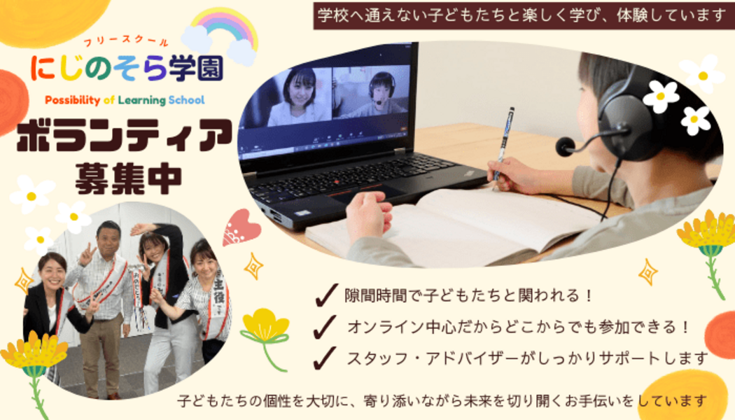 ・フリースクール『にじのそら学園Possibility of Learning School』を運営し、学校へ通えない子どもたちへの学習支援と進路支援