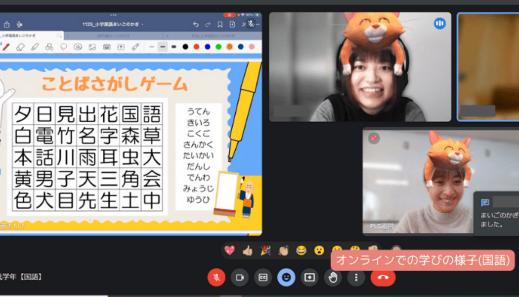 オンラインでの参加では、Googlemeetを使用しています。実際に授業を実施する前に操作方法についてサポートさせていただきますし、慣れるまで基本的にスタッフも授業に一緒に参加します。授業内容や進め方について、経験豊富なアドバイザーがいるので困ったときも相談できます。スタッフがご家庭との橋渡しとなり、お子様の興味のあることやご希望をお伺いしながらサポートさせていただきます。